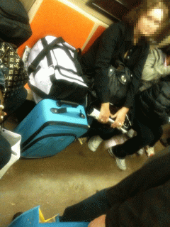 Now no one in their right mind is going to push her bags out of the way (well, I know a few people who would… yeah, you know who you are… and I celebrate your gutsiness). So this woman rode for 40+ blocks with her bags until she popped out past midtown after collecting her inventory of American Tourister clearance items.