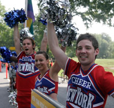 Left: CheerNY, the all-volunteer non-profit adult cheerleading squad by and for the Lesbian, Gay, Bisexual, Transgender and Straight communities, encouraging runners at last year’s run. Photo courtesy of New York Road Runners.