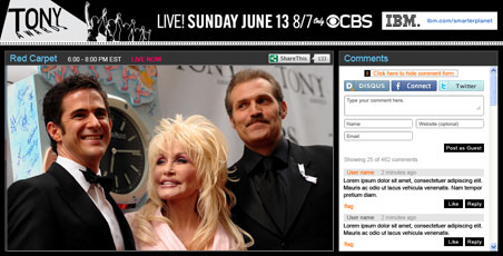 Here the come! The Tony Awards will air on CBS in just under 2 hours. Right now I’m following the Red Carpet coverage on NY1 (also available online at www.tonyawards.com). Don’t forget that the Creative Arts Awards are live at 7:00PM at the link above as well. Stay tuned. More to come! NOTE that updates will appear below this paragraph in order of most recent.
