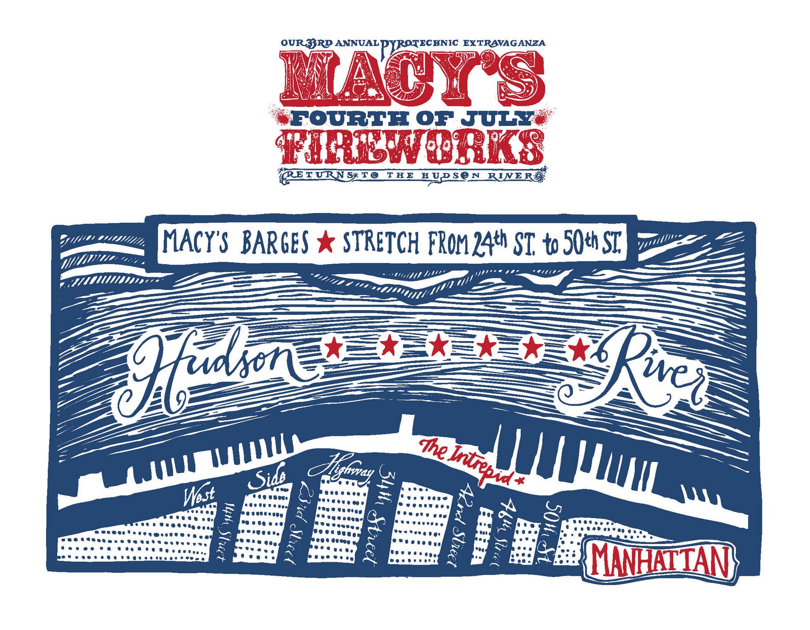 And then… BOOM! “What the hell?” Patty spun in place, looking into the sky. Another boom! And another. Soon the sky was shaking with booms, whistles, fizzes and pops. We were only one block from the river and yet the two-story warehouse that stood between us and the pyrotechnic extravaganza was exactly the right height to shield us from enjoying the majesty of the Macy’s fireworks display. “Let’s move!” The three of us picked up and marched on, heading toward the corner at 46th thinking maybe we could catch something and not have wasted our time.