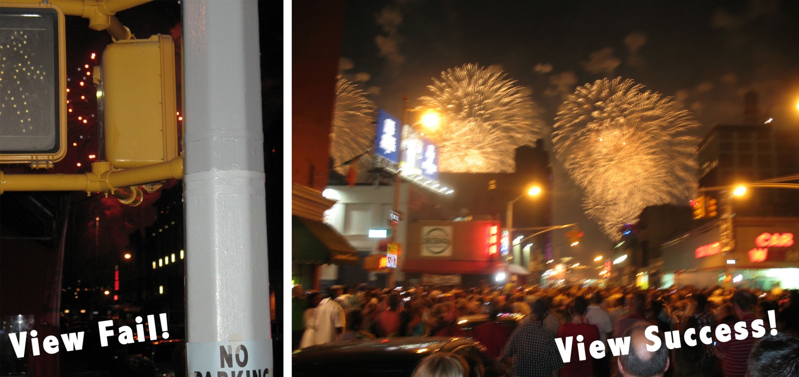 FAIL again… see Image A below. But then, after deciding “Let’s get outta here before the crowds start to move” we heading east on 46th Street and, suddenly, we had tons of room and a great view. In hindsight this might have been the “duh” moment of the night. But for us it was a sudden burst of genius! So we enjoyed the show from our newfound haven and then headed home satisfied that we’d had the fun we had sought out.