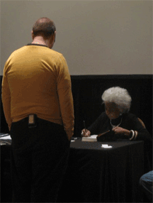 I don’t know much about Star Trek, except for the couple of movies I’ve seen or the episodes I’ve watched with Mike or my roommate (also a Trek fan). But it really felt like a study in cultural anthropology to watch the throngs of people who, at the risk of making a broad generalization, seemed somewhat socially awkward when greeting each other.