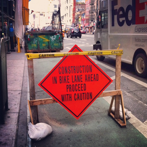 PHOTO: Caution: Caution Sign in Bike Lane. #nyc