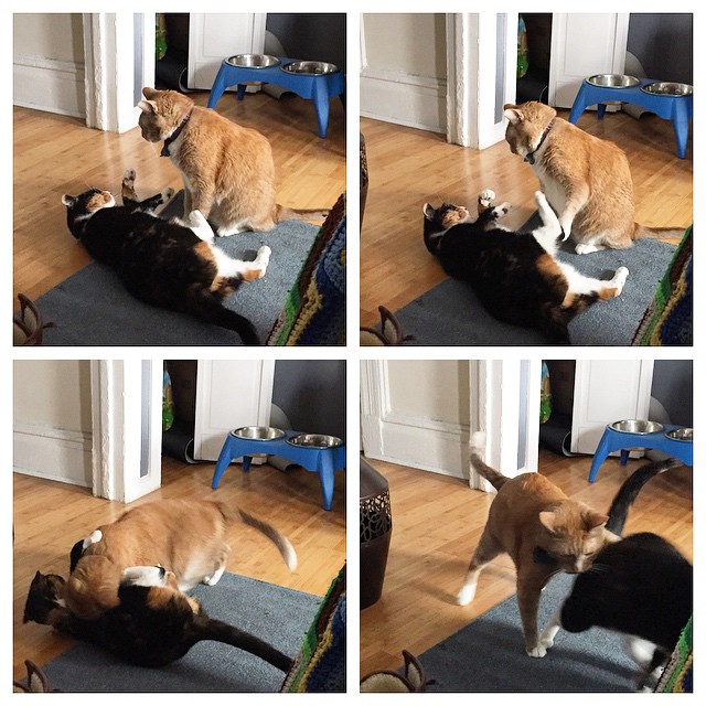“No, I just want to say ‘Hi.’ Really.” WHAM! “Argh!” #cats #pinter #zoey #brooklyn