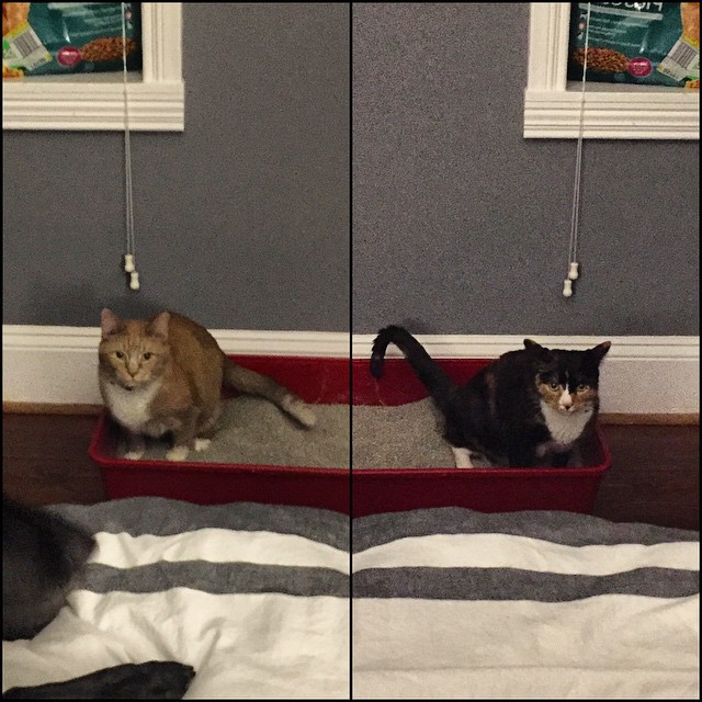 Making themselves at home at Aunt Lorren & Uncle Stephen’s. #mattandtommy #CharlotteBound #catsofinstagram