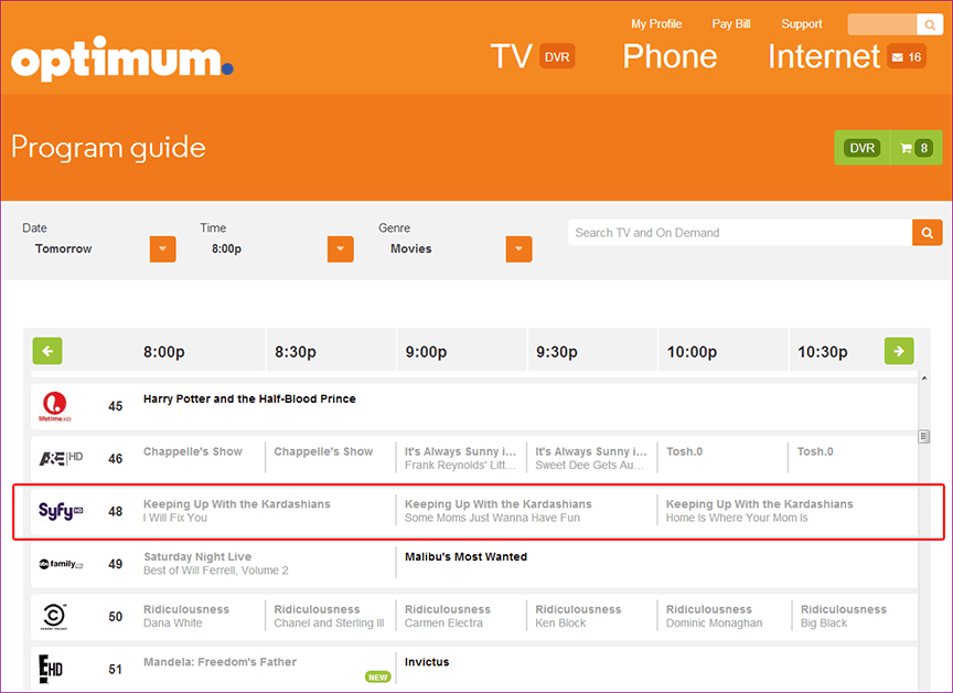 WHOOPS! Our Optimum Cable guide seems to be out of whack… or it is more intuitive than expected.