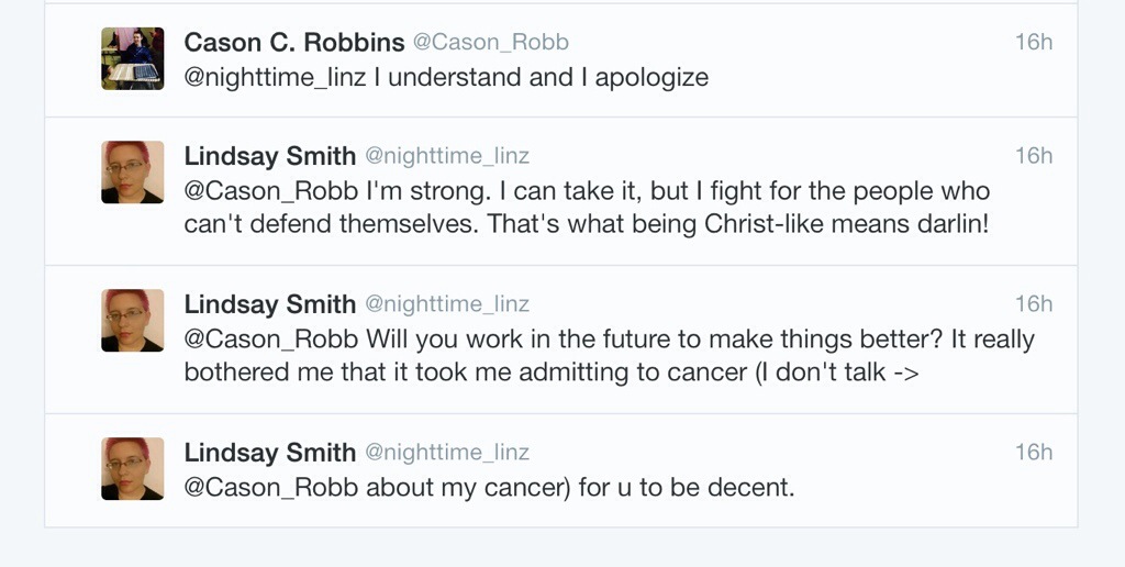 UPDATE: Lindsay Smith has posted on her own blog about her experience in the back-and-forth that occurred (and will no doubt continue to occur with others) on Twitter. Check it out here! ORIGINAL POST: Last night, a Twitter exchange began between an LGBT advocate and, probably bored, high schoolers who were, again, probably, looking for…